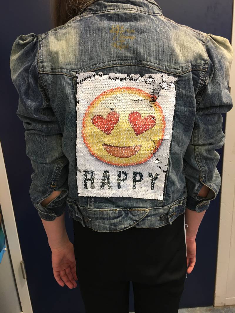 Dit hele leuke vestje is gerecycled. We hebben namelijk de achterkant van een ander shirt afgehaald en dit op het vest genaaid. Het is echt een heel leuk shirt. De maat van het vest is een M (158/164)